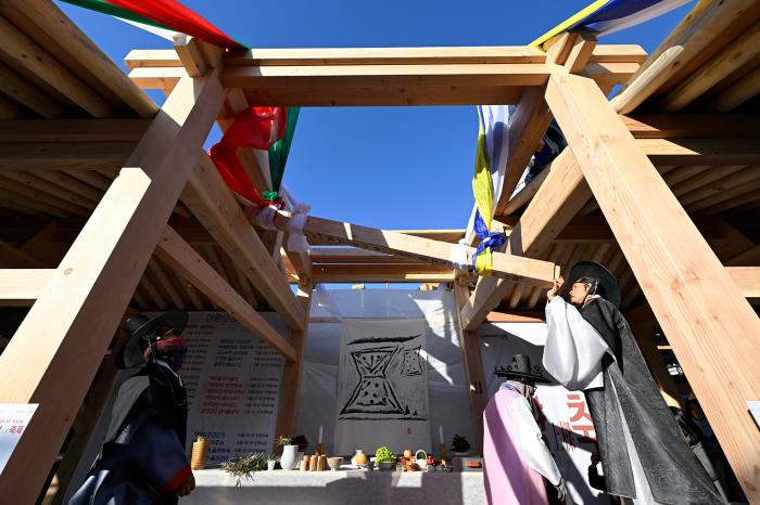 이날 행사에서 가장 큰 관심을 모은 순간은 상량문 작성이었다. 상량문은 건물의 영원한 보존과 거주자의 복을 기원하는 문구로 마룻대 양쪽에는 ‘용(龍)’자와 ‘귀(龜)’자를 쓰고, 올리는 날짜와 축원 문장을 적는 것이 전통이다. 최경식 남원시장이 직접 상량문을 작성해 명지호텔의 성공적인 완공과 번영을 기원했으며, 소리꾼의 상량 소리에 맞춰 상량문이 적힌 마뭇대가 올려지며 고사가 마무리됐다.